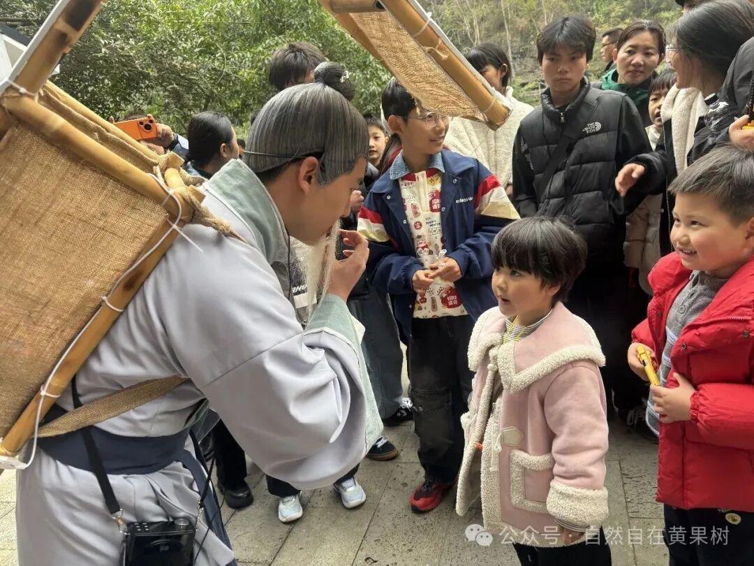 “嘿,徐霞客?”在景区徐霞客雕塑下,一位身着明代长衫、肩负竹编背篓的“徐霞客”出现在人群中,让游客们惊喜不已。这位“徐霞客”不仅与游客吟诗作对,还畅谈四百年前游历黄果树的见闻,引得众人纷纷合影留念。
