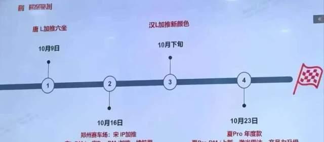 日前,有媒体分享了比亚迪王朝网新车发布规划图,据悉,比亚迪王朝网10月份将要发布的5款新车,结合此前申报信息,预计比亚迪10月份将推出超 7 款新车,包括唐L六座版、新款汉加推版、新款宋L DM-i、新款宋Pro DM-i、夏Pro、新款e9、宋L GT 等车型,一起盘点一下吧!