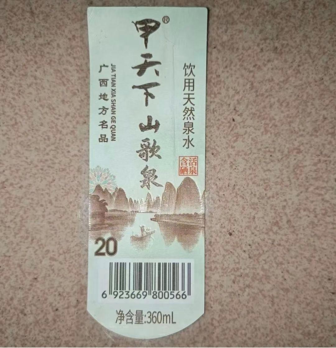 1月6日,该局接到群众反映,广西秀瑶圣水矿泉水有限公司生产的“甲天下山歌泉”饮用天然泉水,其产品标签疑似存在违规使用人民币相关图样的问题。