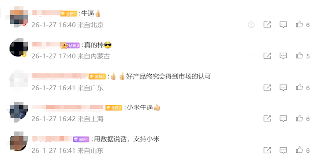 “好产品终究会得到市场的认可”“用数据说话”“这是小米应得的”,网友纷纷评论。